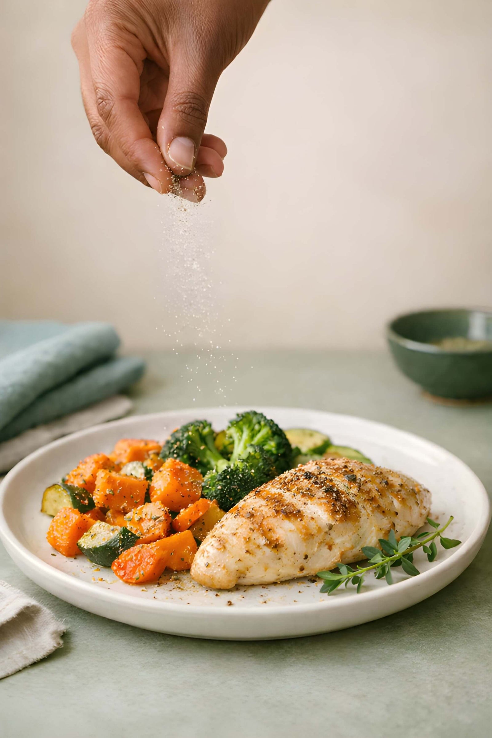 Use the "sprinkle + cook + finish" method: season before cooking, taste near the end, then add a light finishing sprinkle. Start small and build.